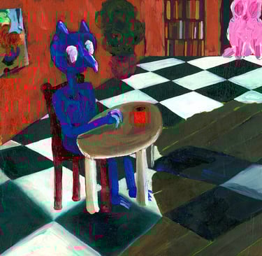 Je recherche des compositions étranges, aux perspectives impossibles qui inquiètent et où les frontières entre le dedans et le dehors restent indéfinissables. Le banal, l'usuel - une lampe, une chaise, un escalier - dialogue avec le magique, le curieux. Il s'y raconte l'imminence possible d'un évènement inconnu.
